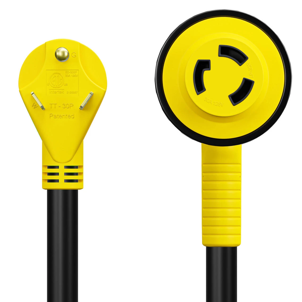 12″ 90-Degree Dogbone RV Adapter 30 Amp Male And 30-Amp Female With Twist Lock And LED Indicator (30 Amp Male – 30 Amp Female Twist)