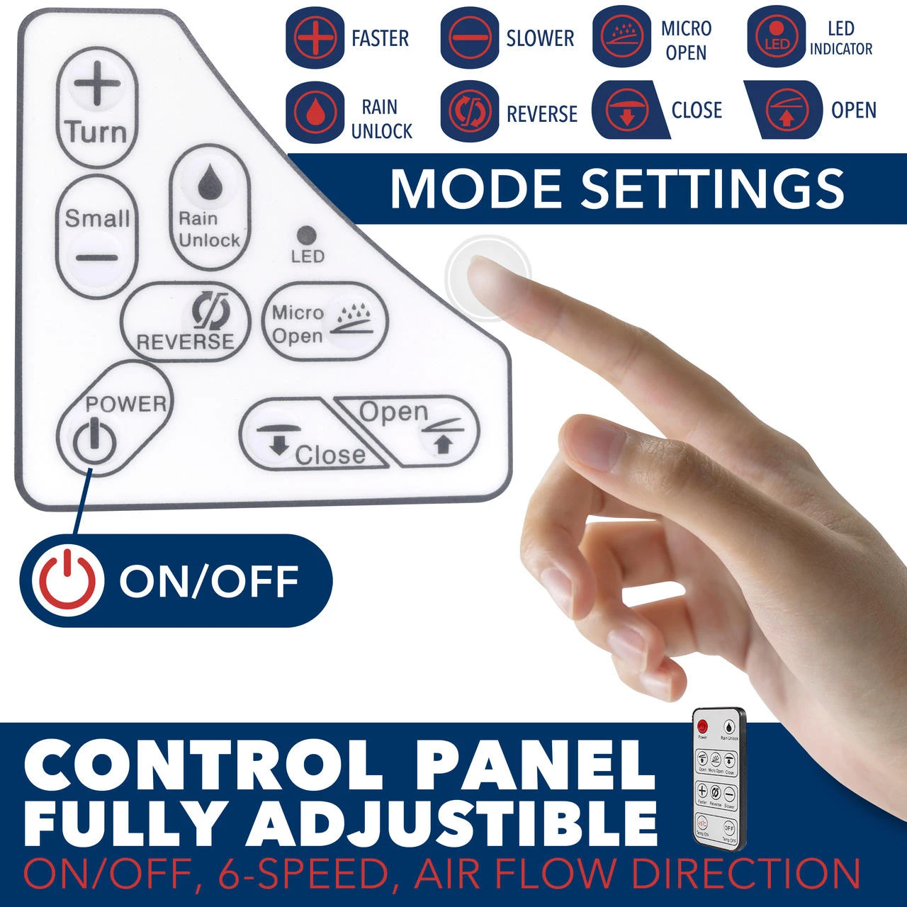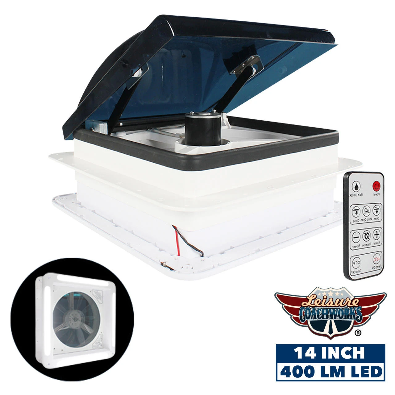Why struggle with a manually operated roof vent when you can have one that is automated? This 14” X 14” RV Roof Vent is loaded with great features. This 2-way fan offers six different speed options, a powered riser rain sensor, an LED remote, and a smoked lid. Batteries for the remote are not included.