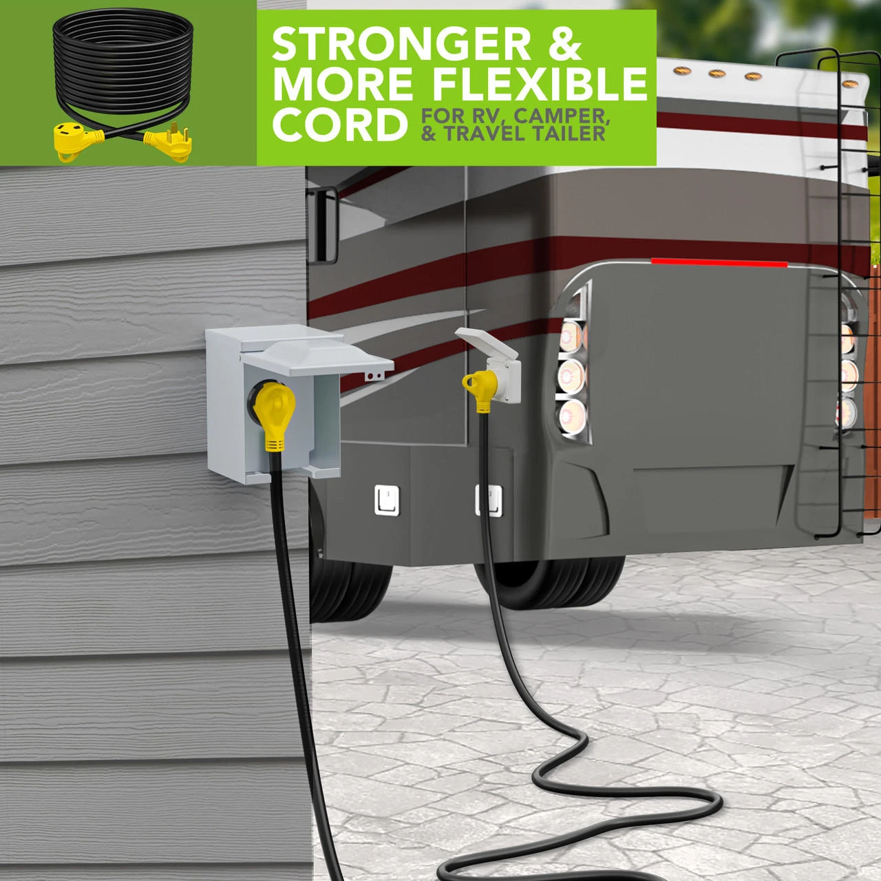 Sometimes, you just can’t get your RV, travel trailer or motor home close enough to the power outlet. No matter what shape your site is, and no matter how far you are from the outlet, this 50 foot cable will get you connected and keep you powered up.