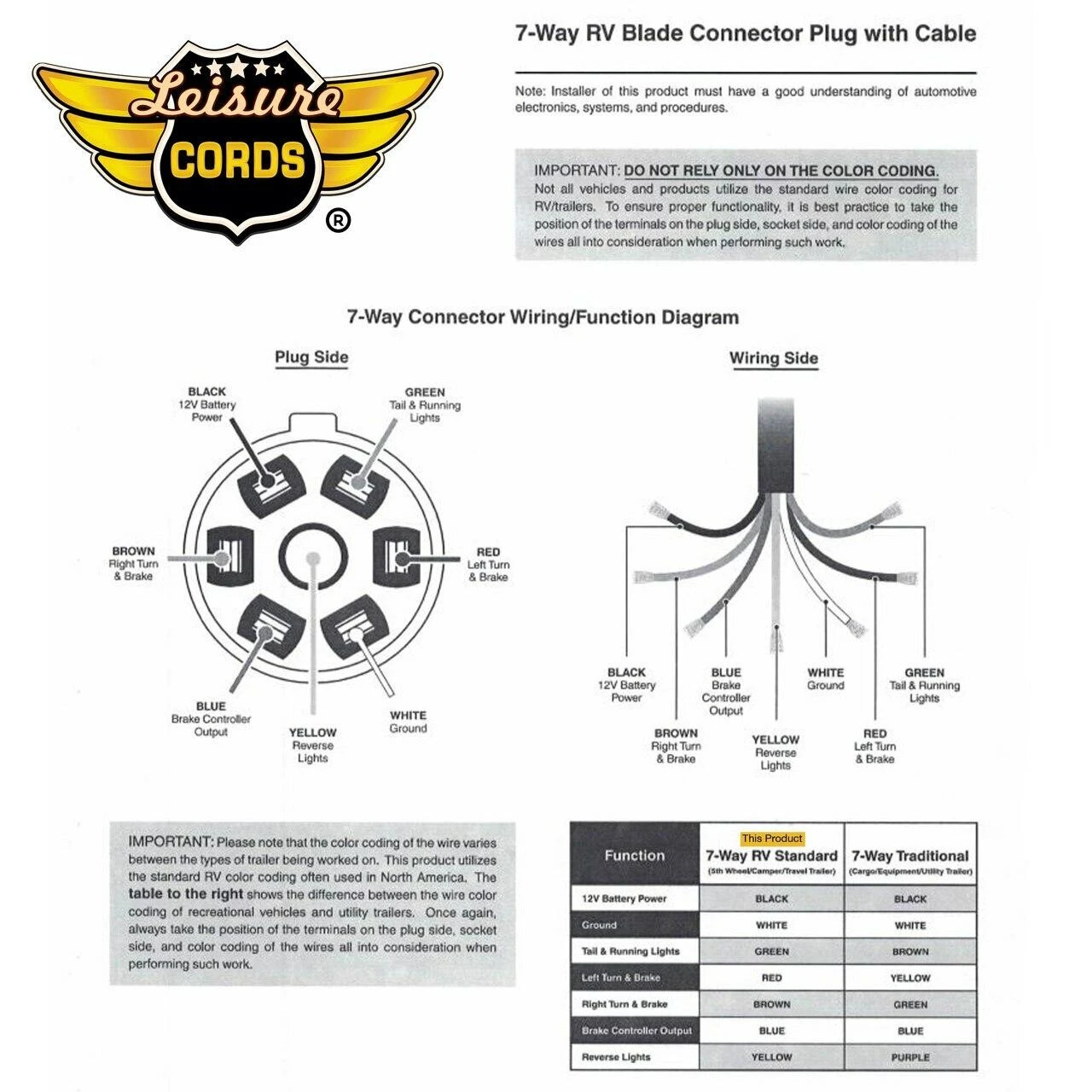 This 12-foot weatherproof cable contains the highest quality copper and ABS plastic. Use it to connect your brake lights, reverse lights, taillights, turn signals, electric brakes, or auxiliary power. It fits standard 7-way RV sockets and uses a male to female connector.