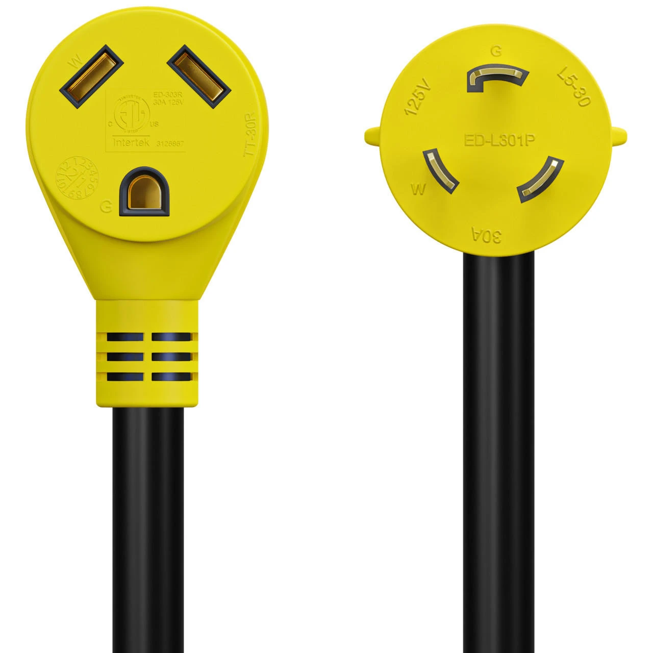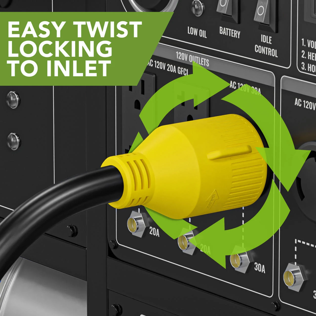 Gen RV 12″ L5-30 AMP Locking 3-Prong Plug To Standard RV Receptacle Generator Adapter With Grip
