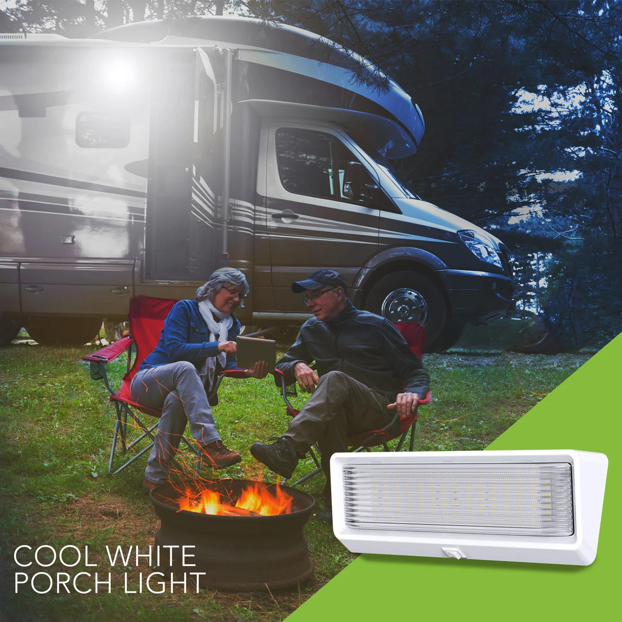 - Leisure LED 650 Lumens LED Rectangle Porch Light Fixture With Switch – Wide Voltage Range : 10-30 volts