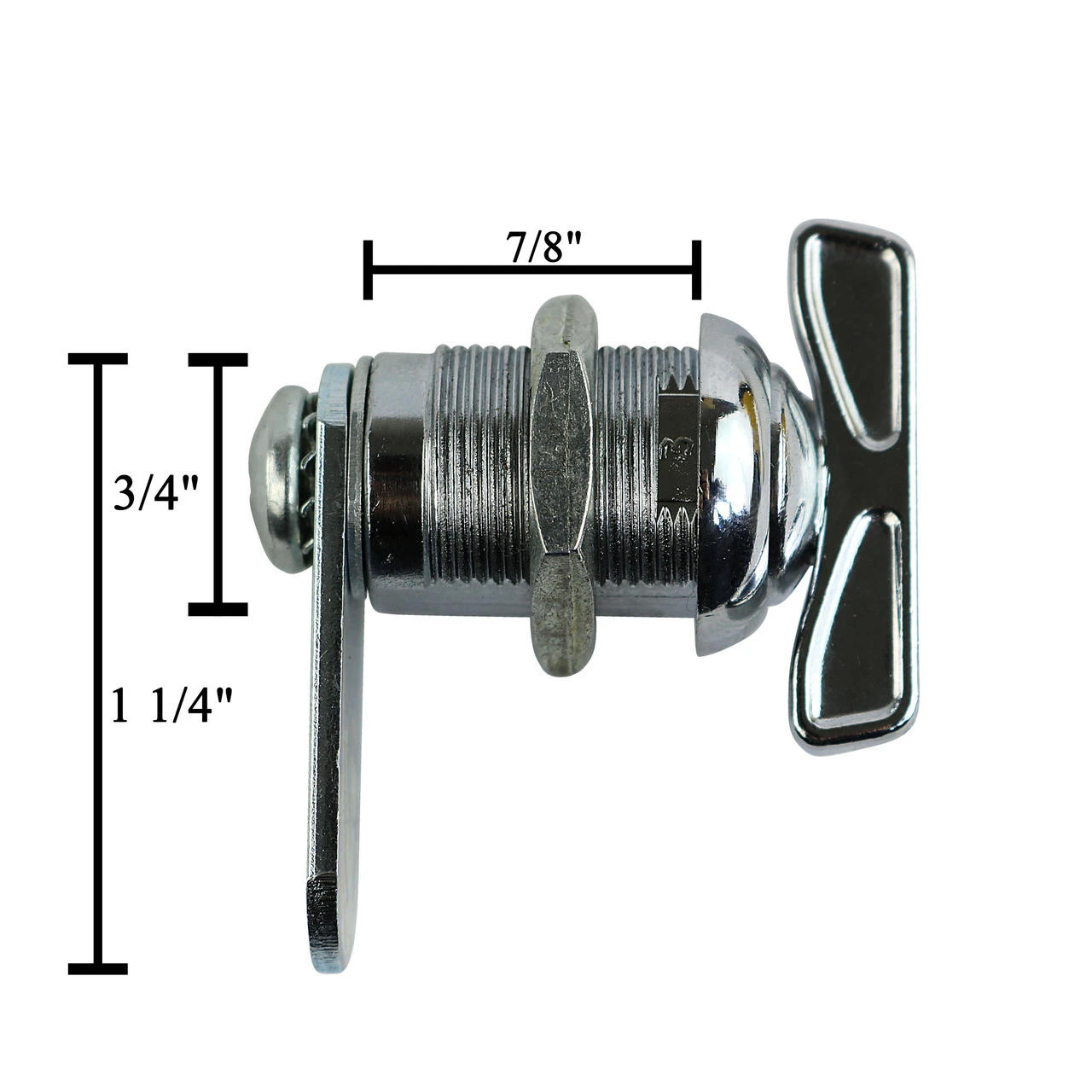 This latch comes with both a straight and offset cam, making it versatile and suitable for different compartment styles. The thumb turn latch is chrome plated with a round face.