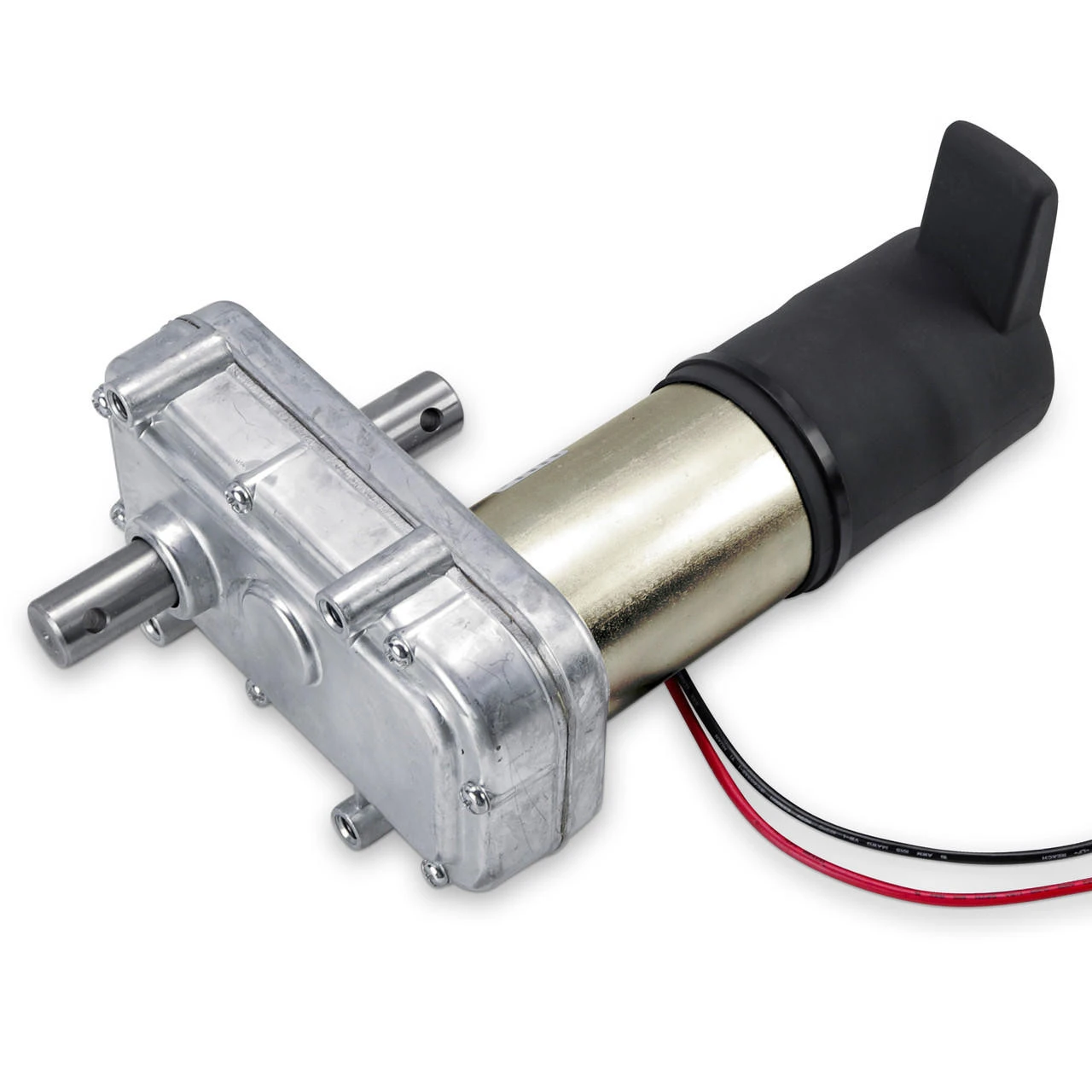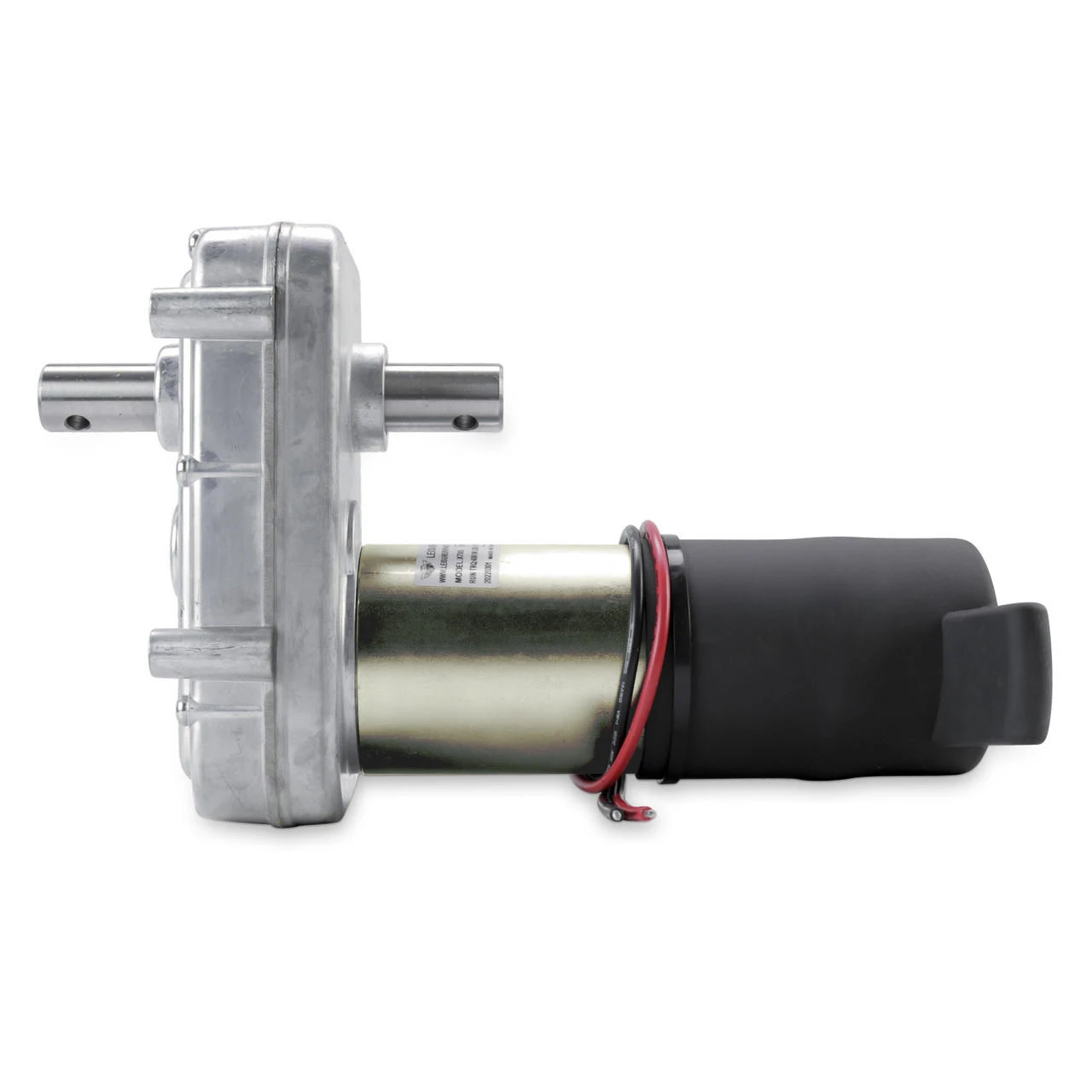 New, permanent magnet, parallel shaft gear-motor. Cast aluminum gear housing and motor end cap with steel motor frame. 12 VDC electro-mechanical brake on rear of motor with manual release lever.