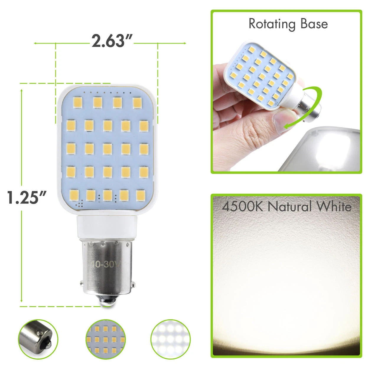 Leisure LED 1156 Rotating Light Bulb 300 Lumen 1141 1156 Wedge RV Interior LED Light 24-SMD Camper Trailer Lamp Bulb 10-24V