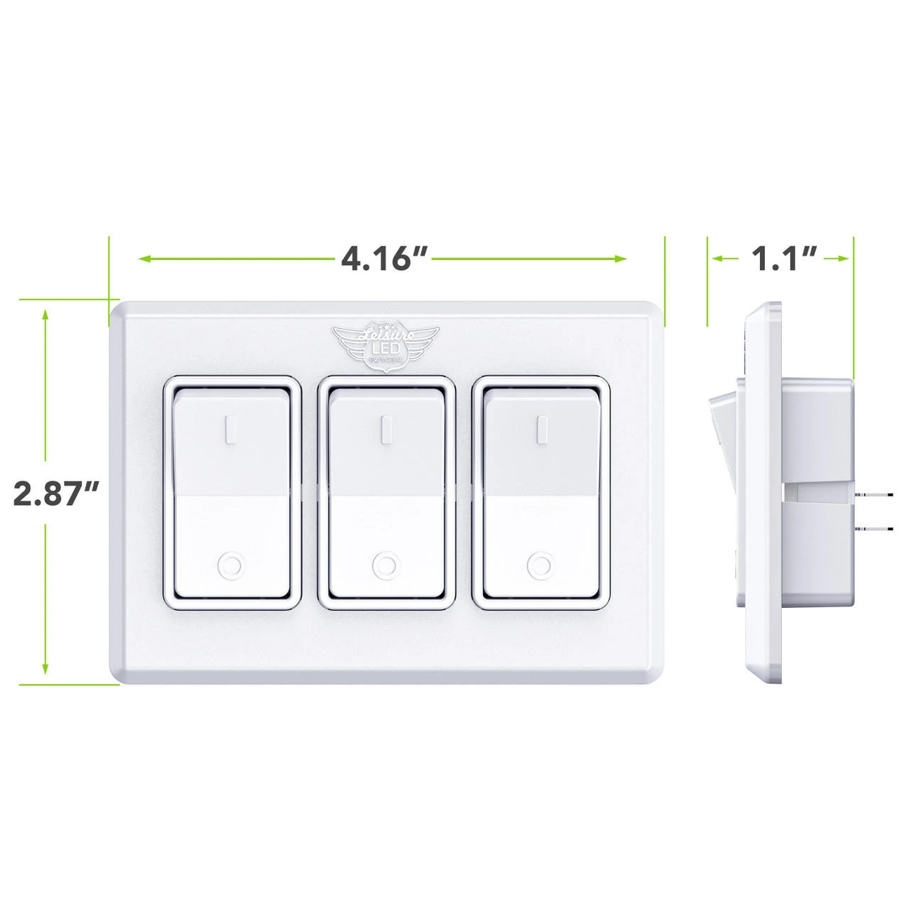- Switch size with bezel 2.87″ (L) X 4.16″ (W) X 1.1″ (H)