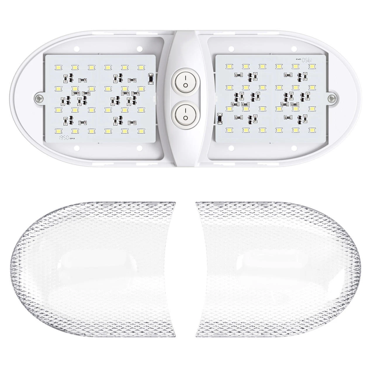 Leisure LED RV LED Ceiling Double Dome Interior Light Fixture Euro With ON/Off Switch Natural White 6000-6500K 48-2835SMD