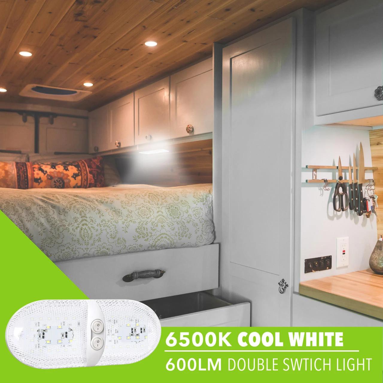 - Convenient ON/OFF Switches Design: built-in 3-way switch that enables you to use one side or both sides of the light independently; it adds great functionality to any area for lighting and it is widely used as perfect replacement light for Car/RV/Trailer/Camper/Motorhomes/Marine Boats.