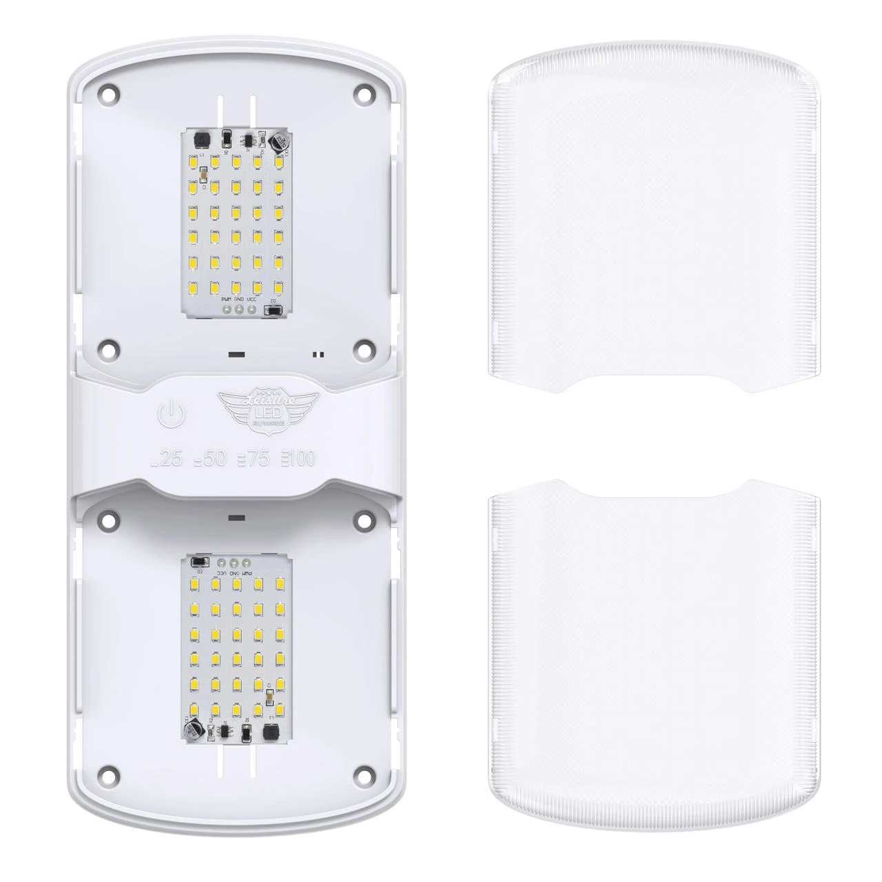 Leisure LED RV LED Ceiling Double Dome Interior Light Fixture Touch To Dim Switch Natural White 4000-4500K 60-2835SMD