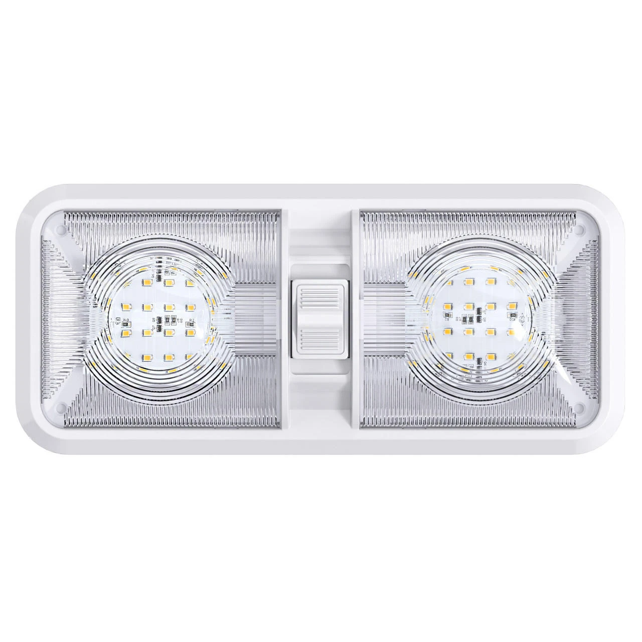 This Leisure RV LED Double Dome Ceiling Light Fixture in Natural White is made with high-quality materials and superior craftsmanship for reliable performance. The fixture is versatile, offers between 310-620 lumens, and lasts longer than standard bulbs.