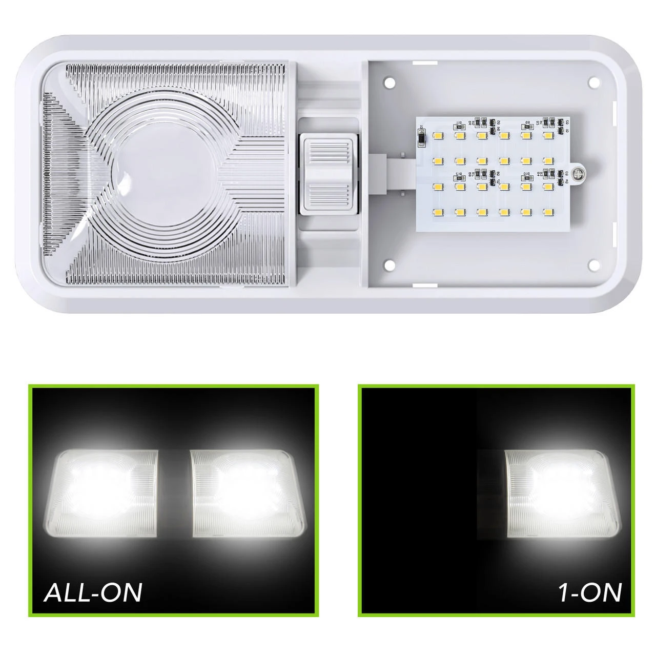 - Convenient ON/OFF Switches Design: built-in 3-way switch that enables you to use one side or both sides of the light independently; it adds great functionality to any area for lighting and it is widely used as perfect replacement light for Car/RV/Trailer/Camper/Motorhomes/Marine Boats.