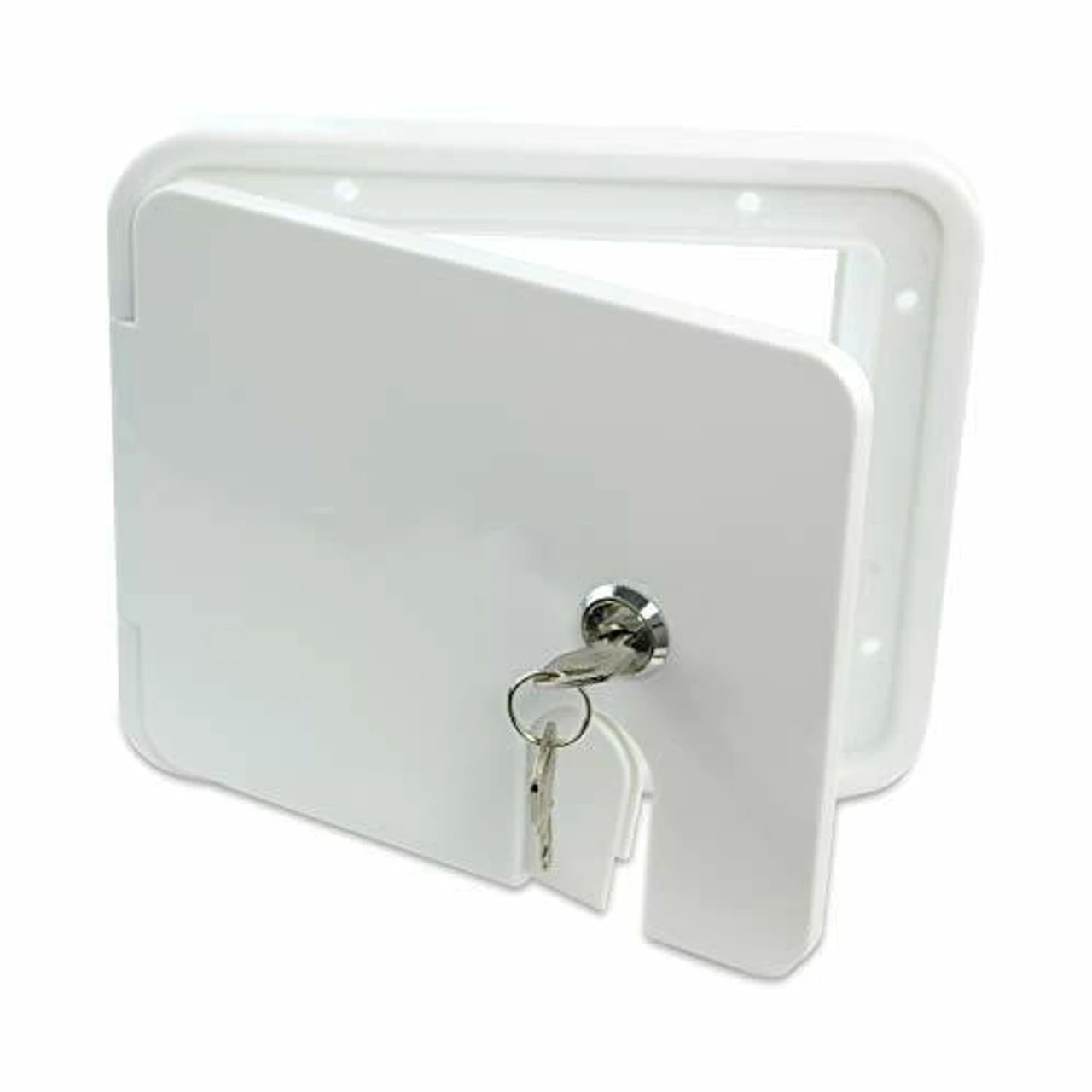 Protect your power cord and cable access with this sturdy access hatch. Made using high-quality plastic, the hatch has a UV stabilizer to ensure a long, durable lifespan. The attractive white hatch is keyed for extra protection.
