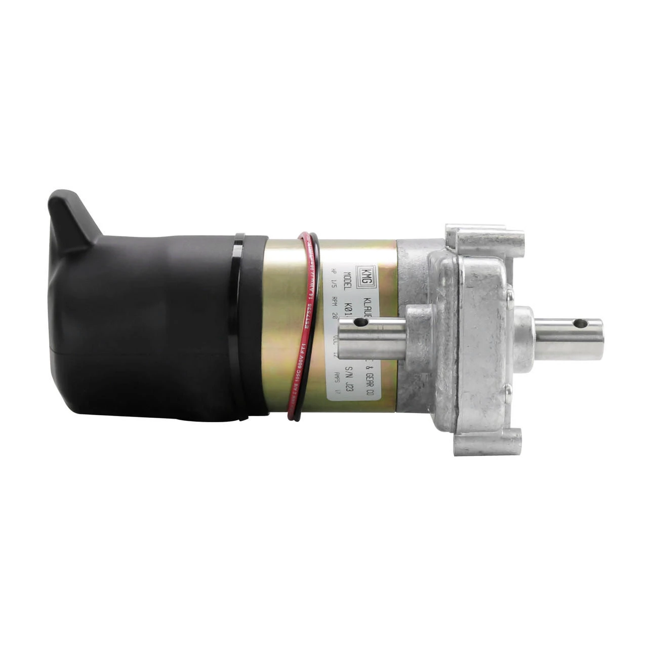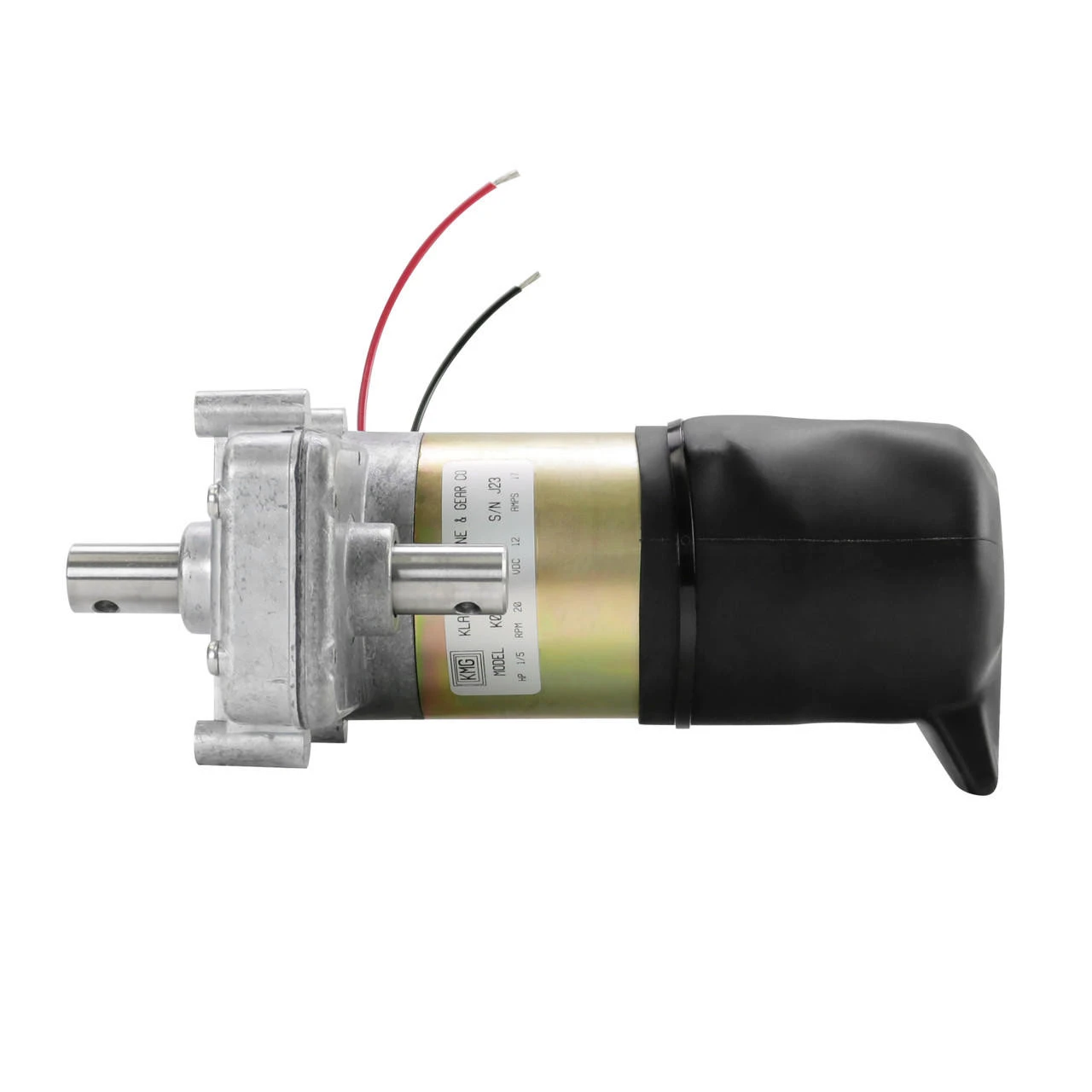 New, permanent magnet, parallel shaft gear-motor. Cast aluminum gear housing and motor end cap with steel motor frame. 12 VDC electro-mechanical brake on rear of motor with manual release lever. Â