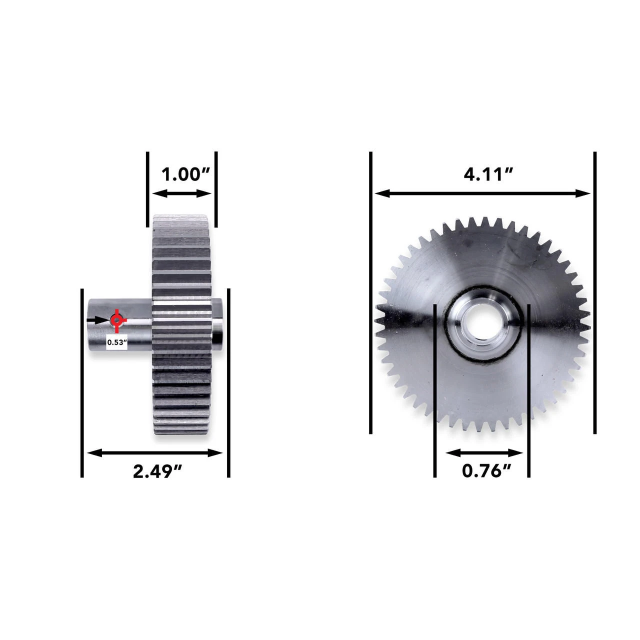 This large 48-tooth reduction gear has 1-inch teeth and a 3/4 inch bore. (GR-7004 Pin Not Included)