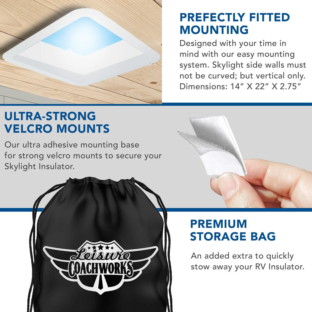 - Fits 14″x 22″Â RV/camper shower skylights/vents.